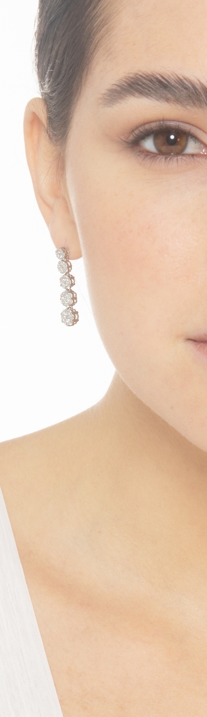 White gold 18k stud earrings with 5 diamonds flowers