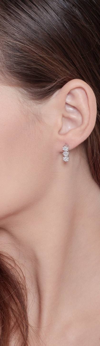 White gold 18k stud earrings with three diamonds flowers