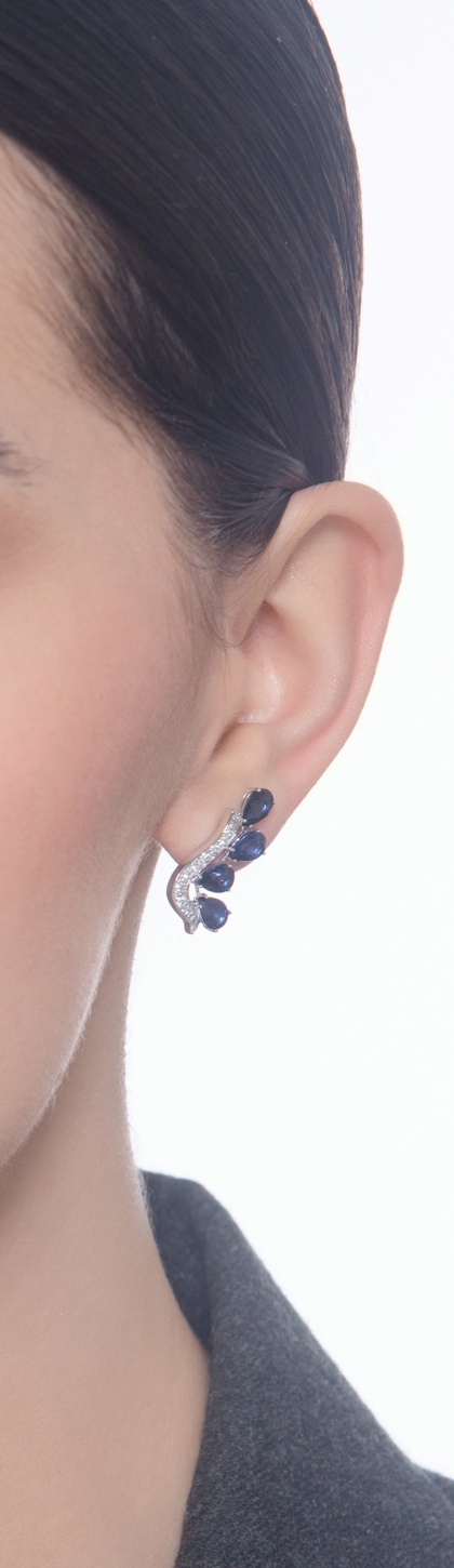 18k white gold blue sapphire and diamond earrings