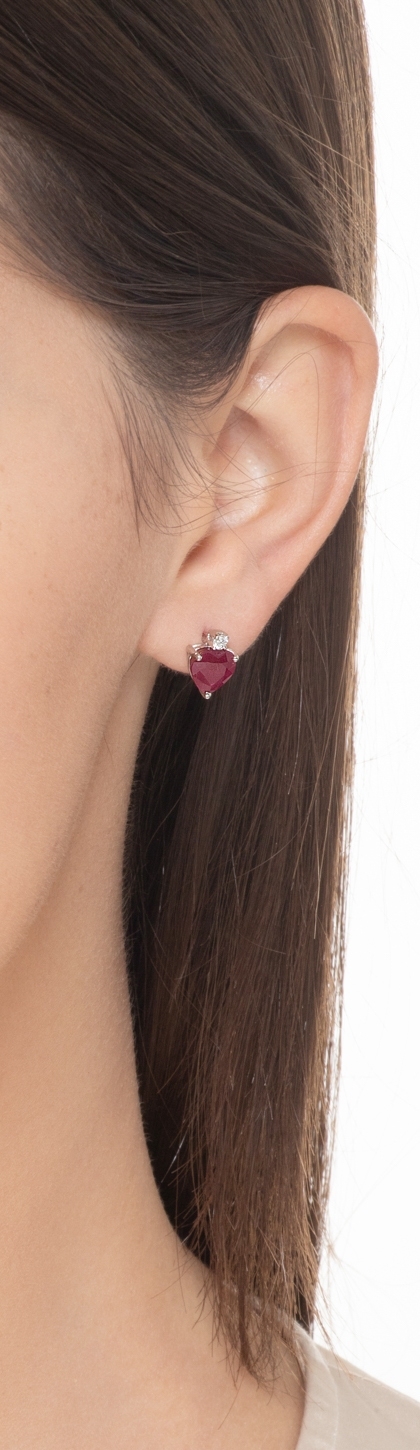 18k white gold earrings with heart cut rubies and round cut diamonds