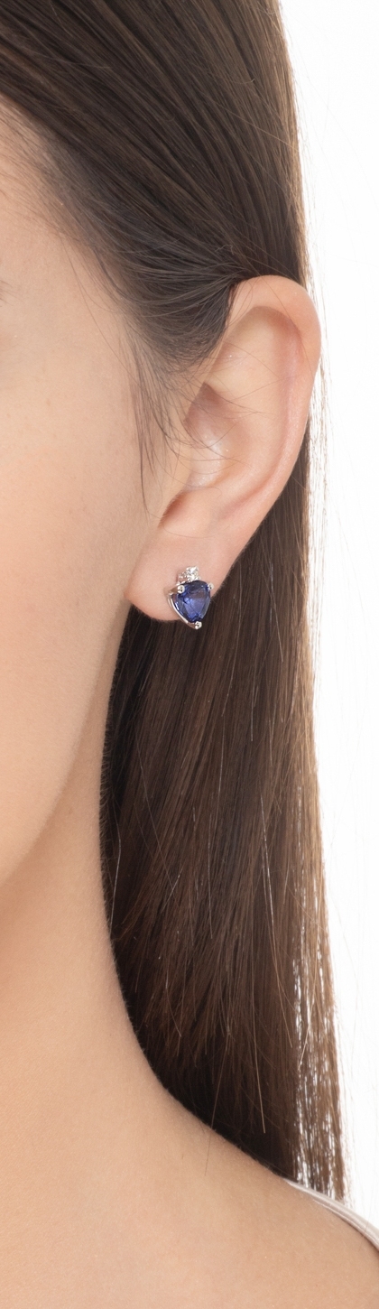 18k white gold earrings with heart cut sapphires and round cut diamonds