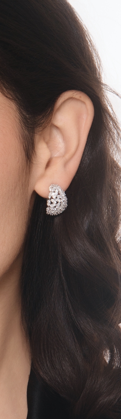 Featuring a drop design, they are entirely covered in white brilliant-cut diamonds placed in a faux marquise structure in order to create a stunning intricate design that reminds of a flower bouquet.