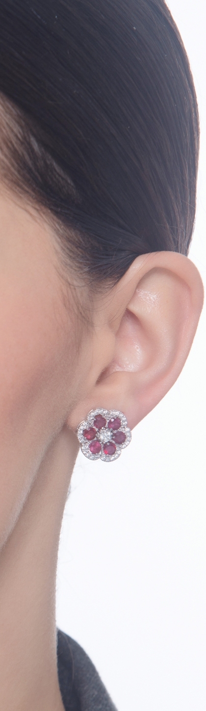 Flower earrings with rubies and diamonds