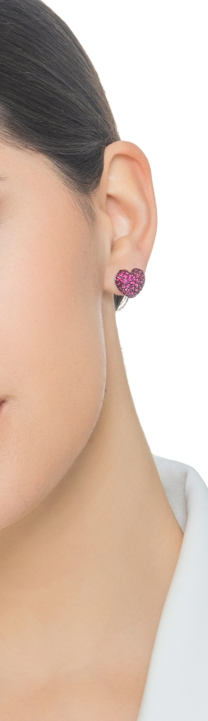 Rubies heart earrings in white gold 18k