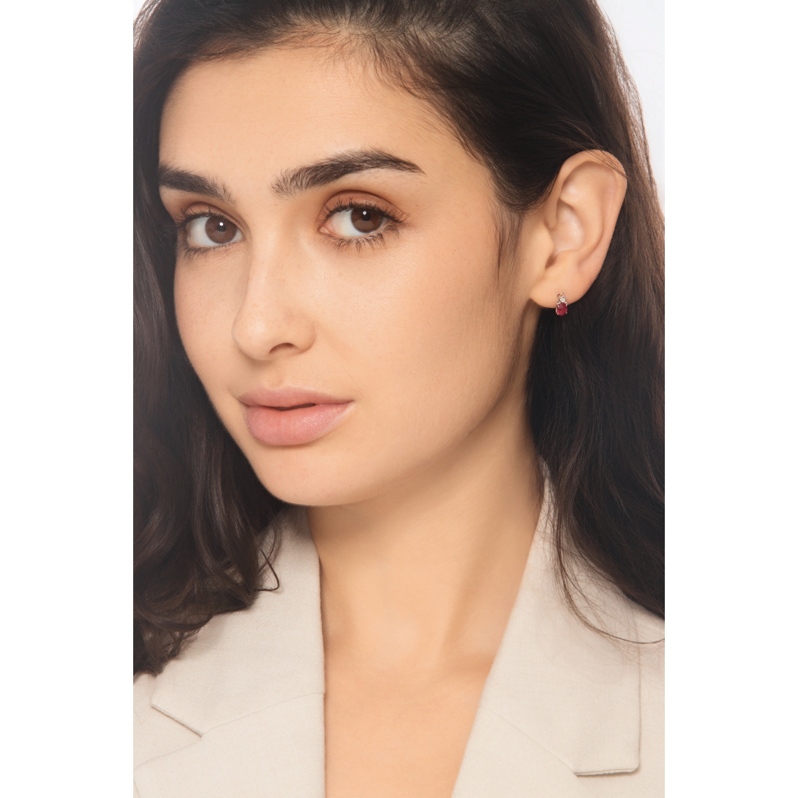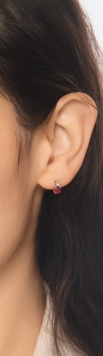 Stud earrings in white gold 750 with oval rubies and diamonds