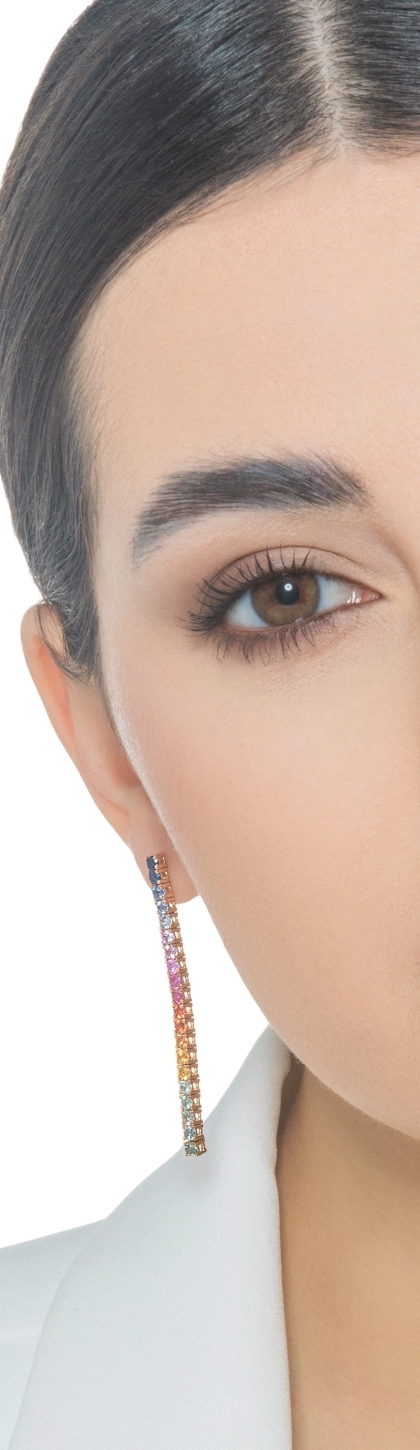 18k rose gold tennis earrings with multicolor sapphires