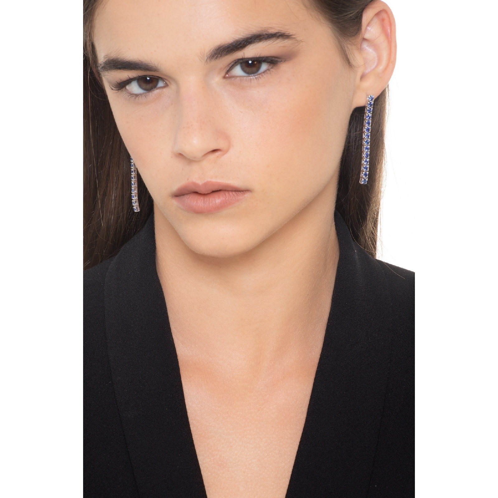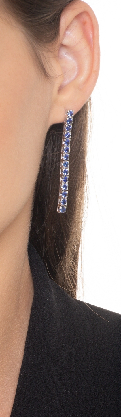18k white gold drop tennis earrings with sapphires