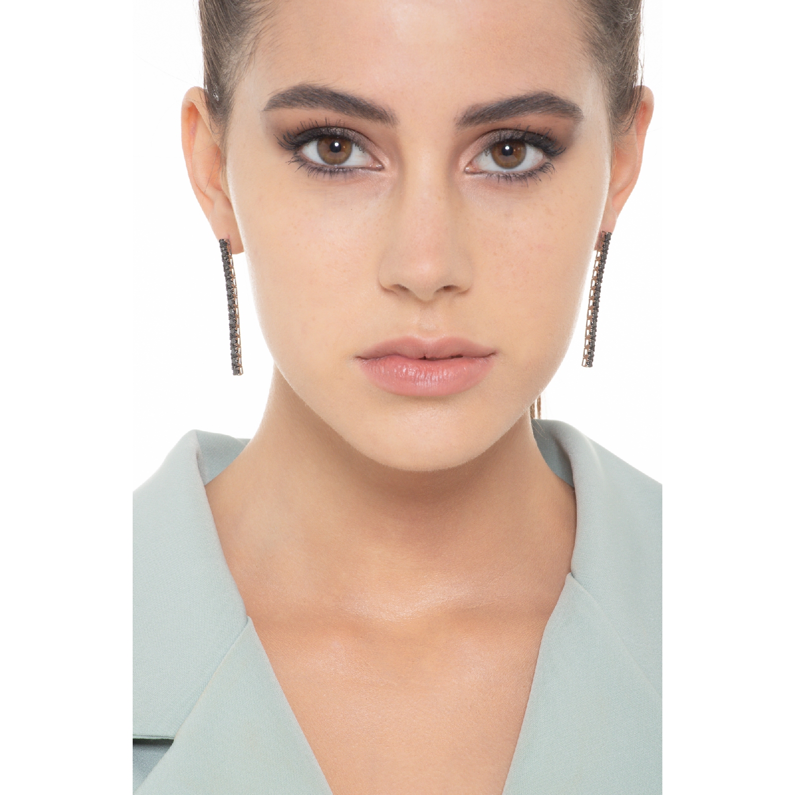 Black diamonds tennis earrings in white gold 18k burnished tips