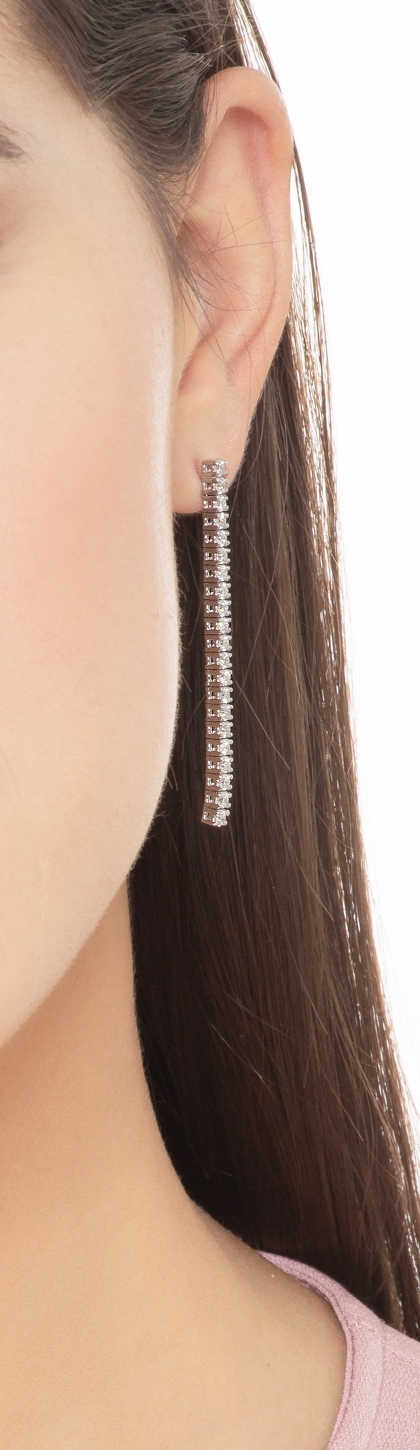 Drop tennis earrings with round cut diamonds, 18k white gold