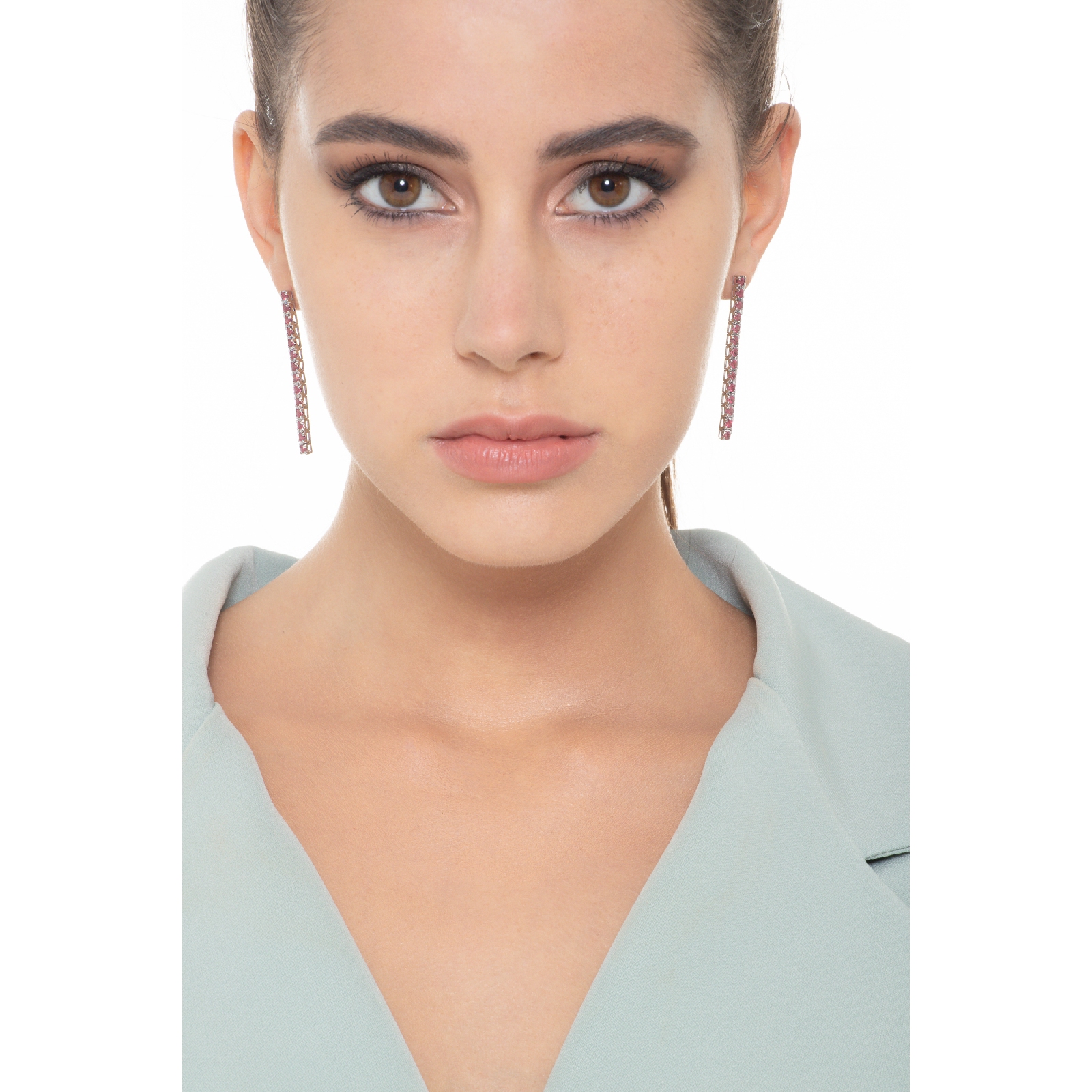 Drop tennis earrings with rubies in 18k white gold