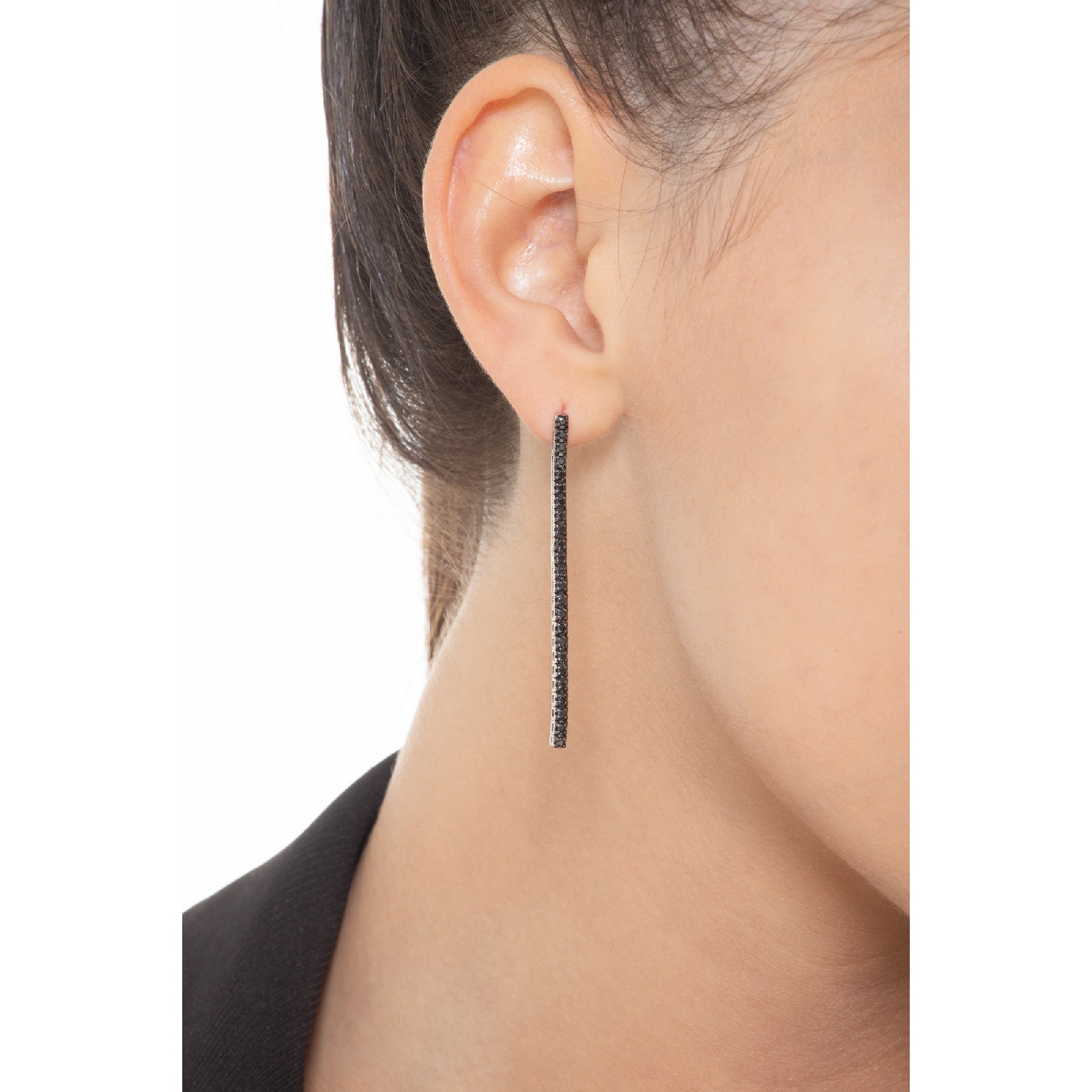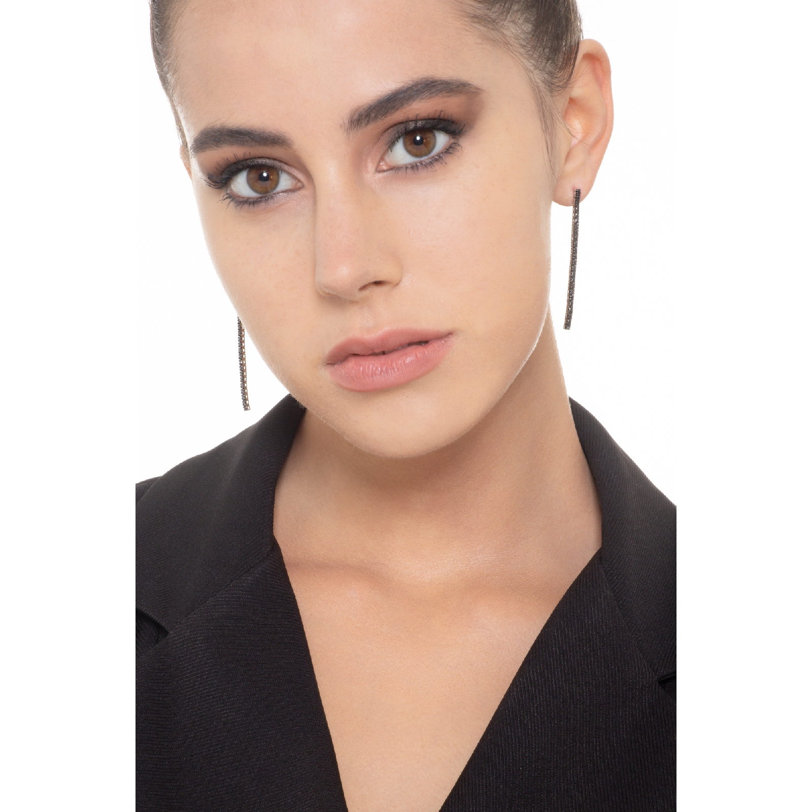 Thin drop tennis earrings with black diamonds in 18k white gold