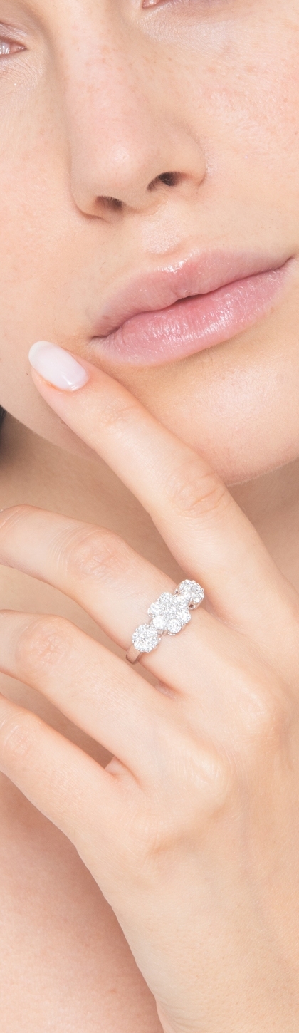 Trilogy diamonds illusion ring in white gold 18k
