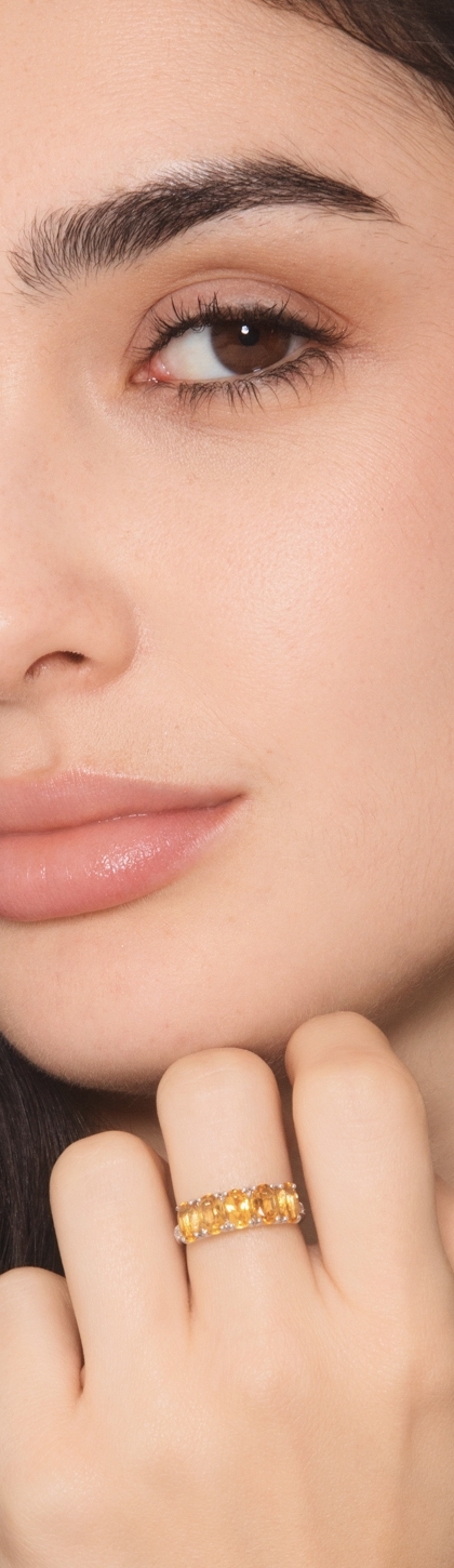 18k white gold ring with citrine and diamonds shoulder set