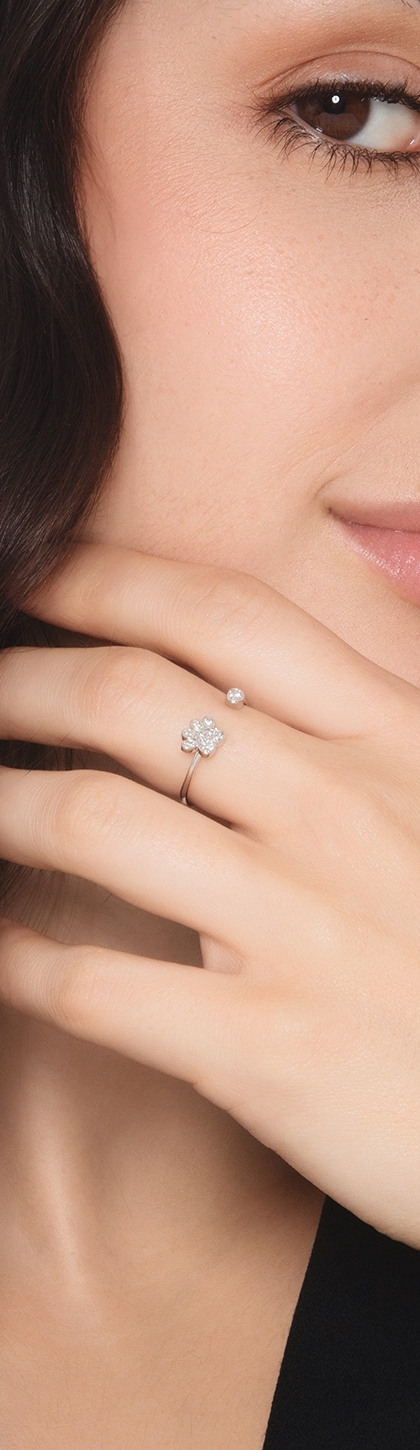 Diamond pavé paw print ring in 18kt white gold
