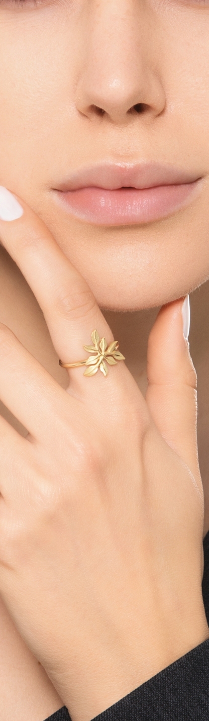 Leaf ring in yellow gold 18k
