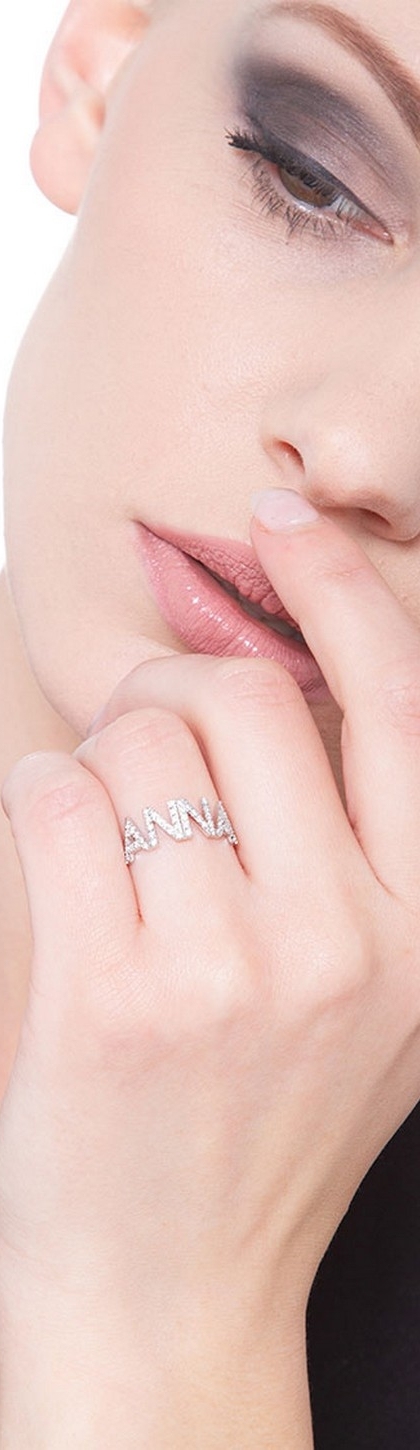 Name ring ANNA white gold and diamonds