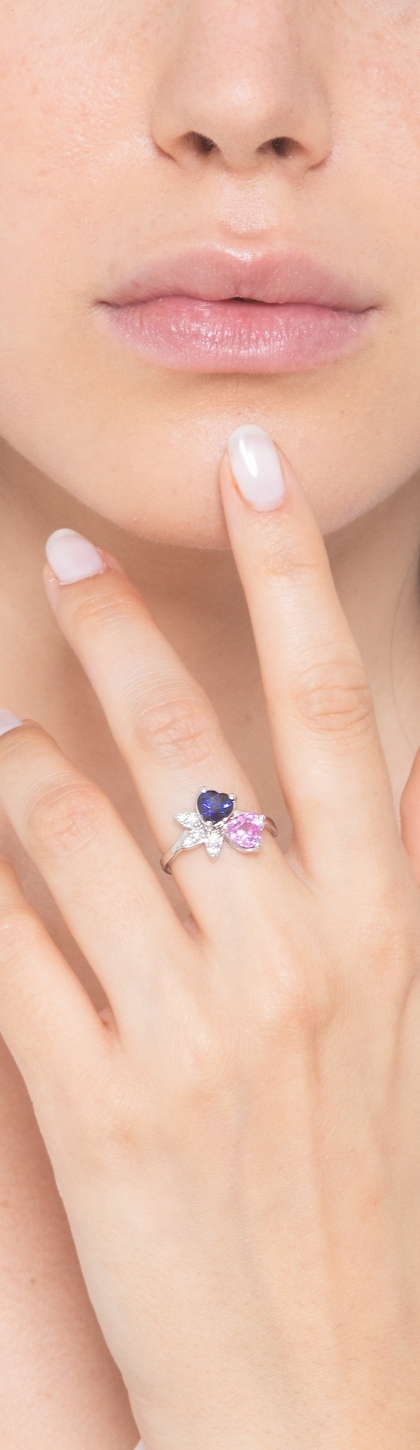 Ring in white gold 750 with blue, pink sapphire and diamonds