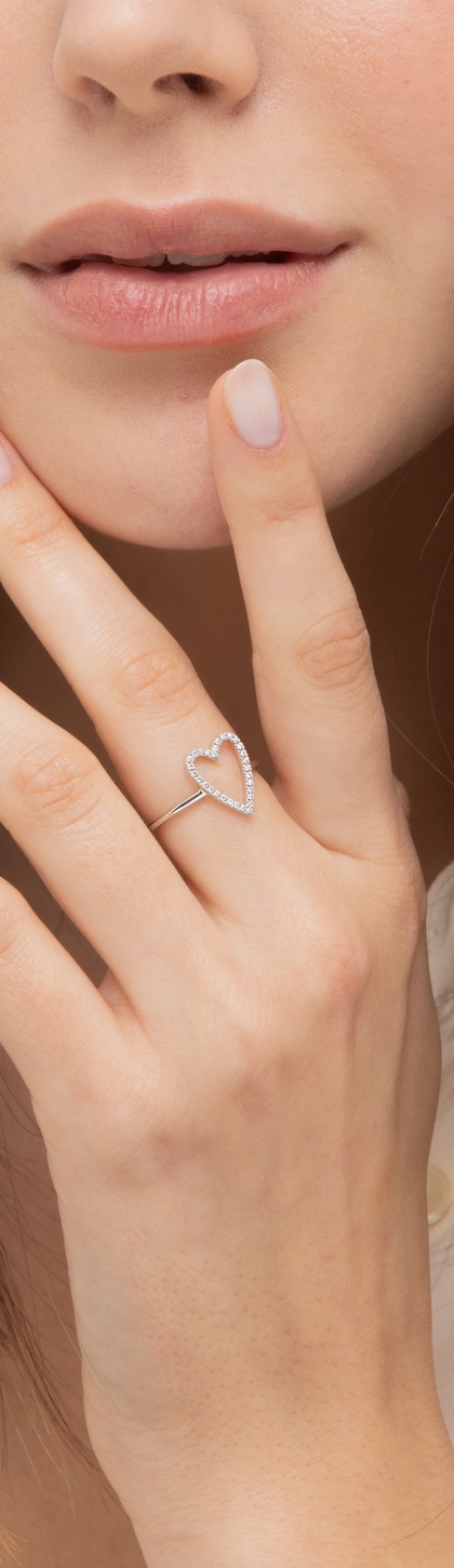 Ring in white gold 18k with heart in diamonds brilliant cut, H color, Vs clarity.