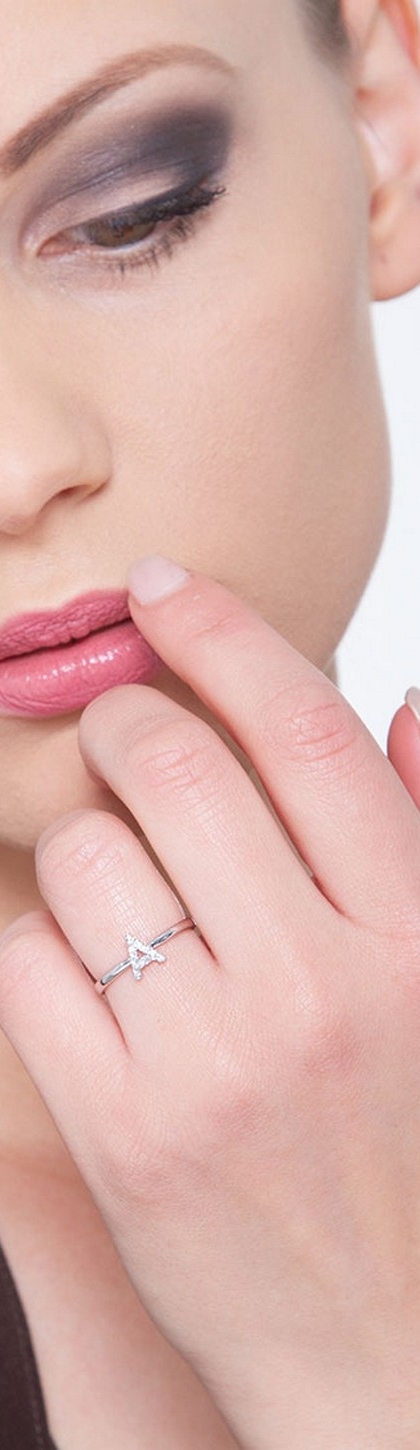White gold 18k ring with letter A in diamonds, H color, Vs Clarity, brilliant cut, 0,09 ct. The letters are 8 mm high.