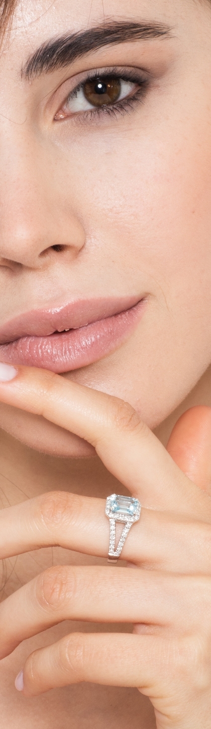 White gold 18k ring with diamonds and aquamarine