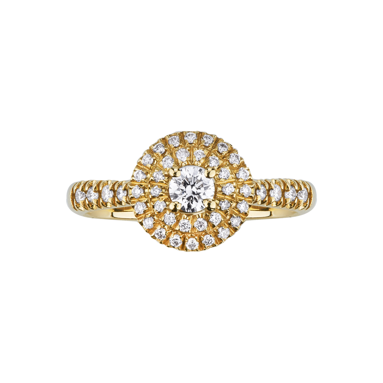 Round diamond pavè ring in 18kt yellow gold