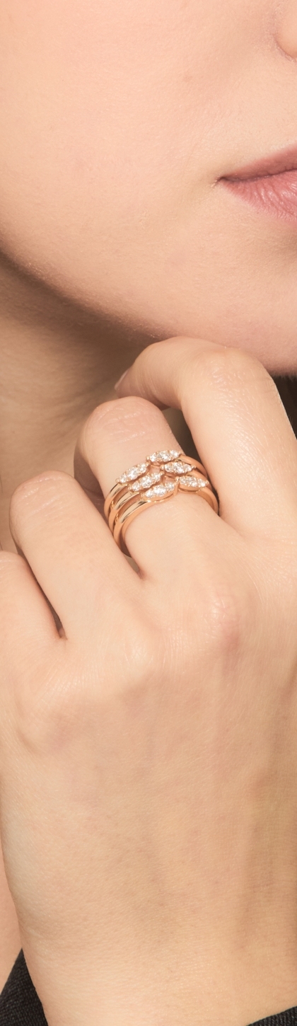 18k rose gold band ring with diamonds