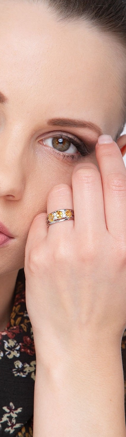 18k white gold band rings with three oval citrine and diamonds