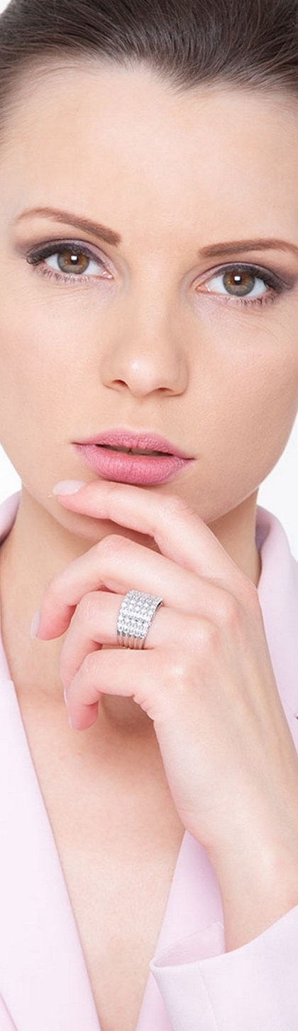 18k white gold ring with 5 rows of diamonds