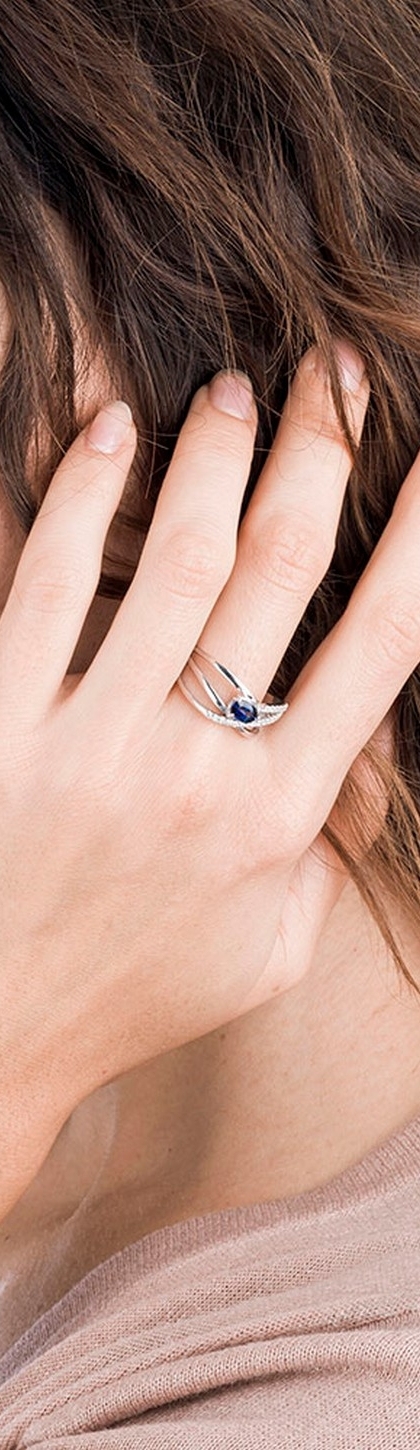 18k white gold weave ring with blue sapphires and diamonds