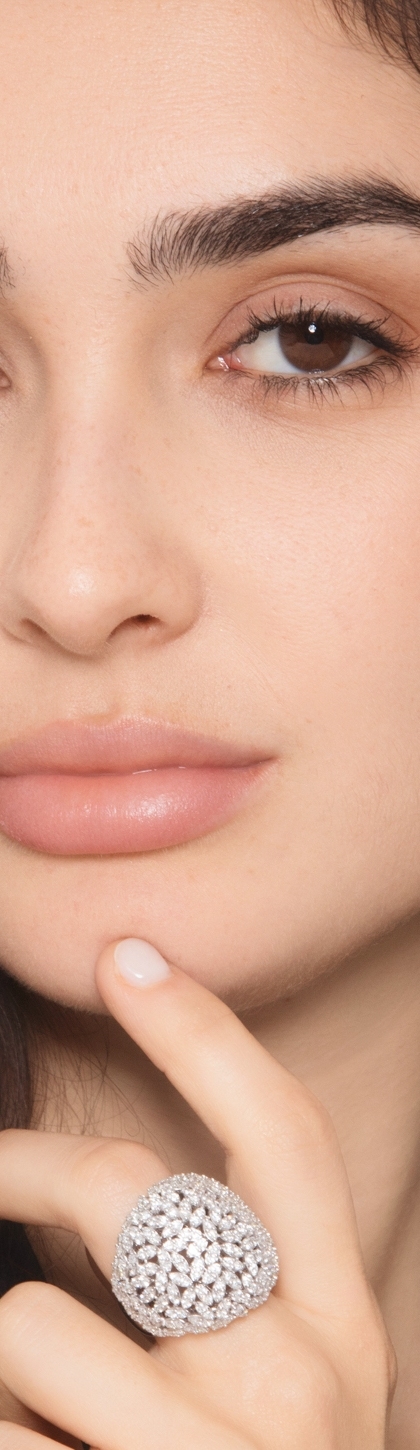 Cocktail diamond dome ring in 18kt white gold