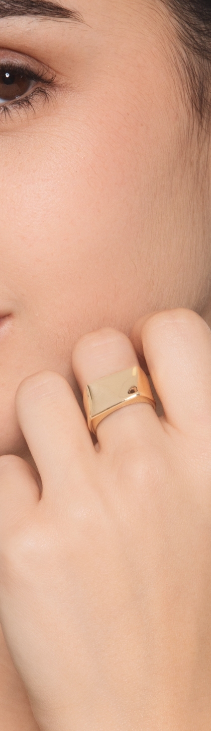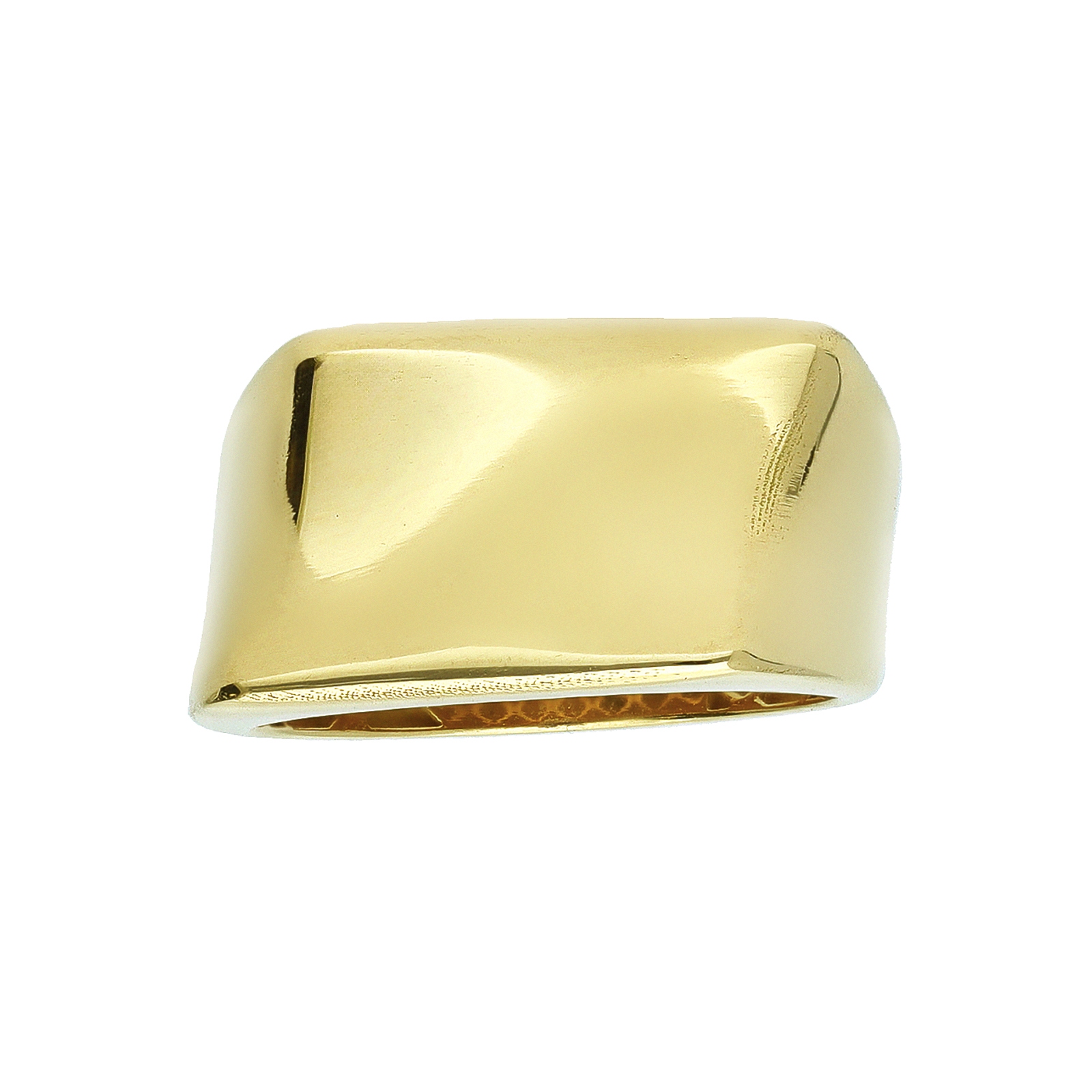 Crafted entirely in luxurious 18kt yellow gold, this stunning ring has a minimalistic design with pair perfectly with other maximalist accessories whether other rings and bracelets or bold and colorful outfits.