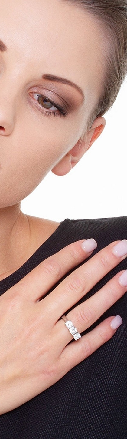 Woman trilogy in white gold 18k 4 claws with diamonds, H color, Vs clarity.