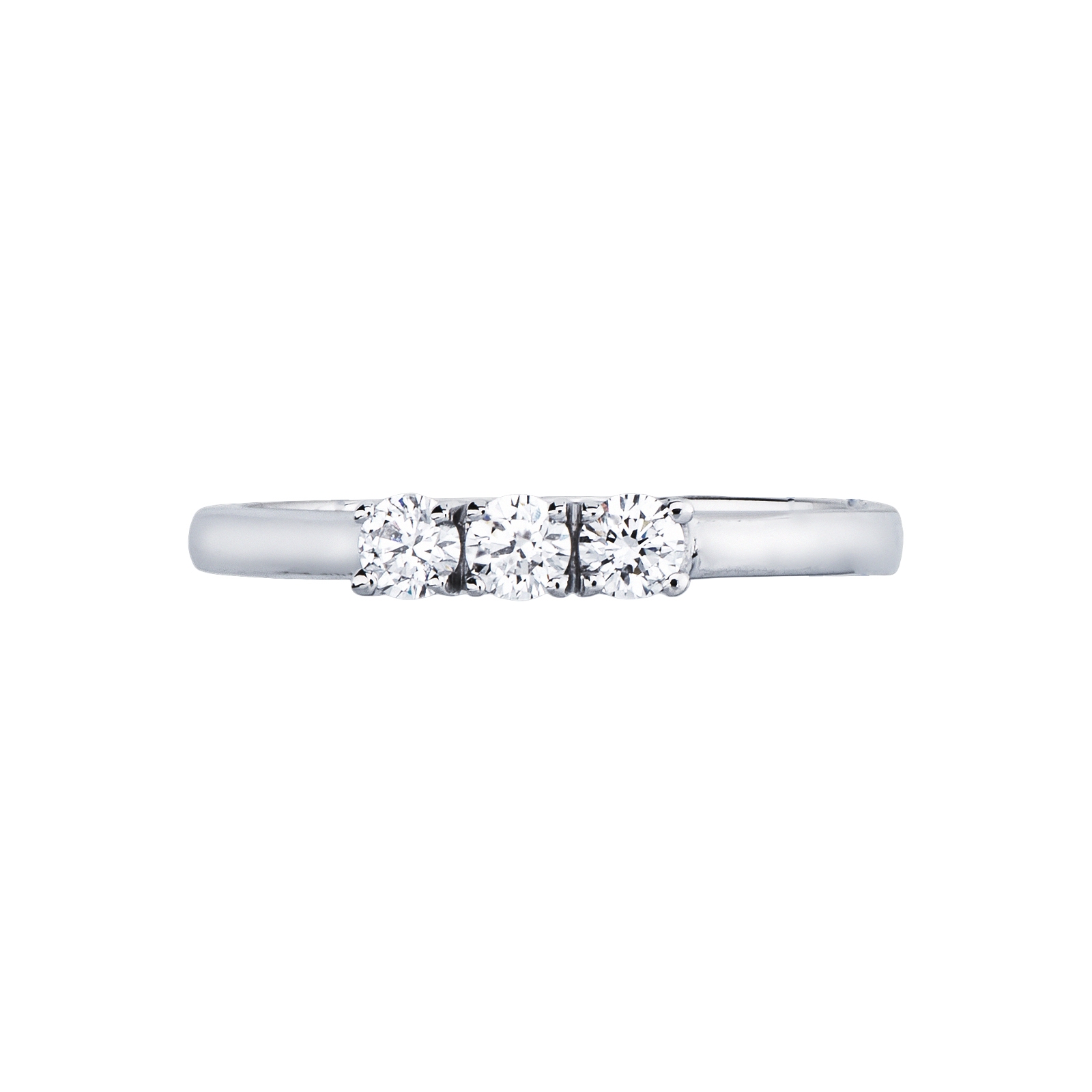 750 white gold trilogy ring with three diamonds, 0.21 ct