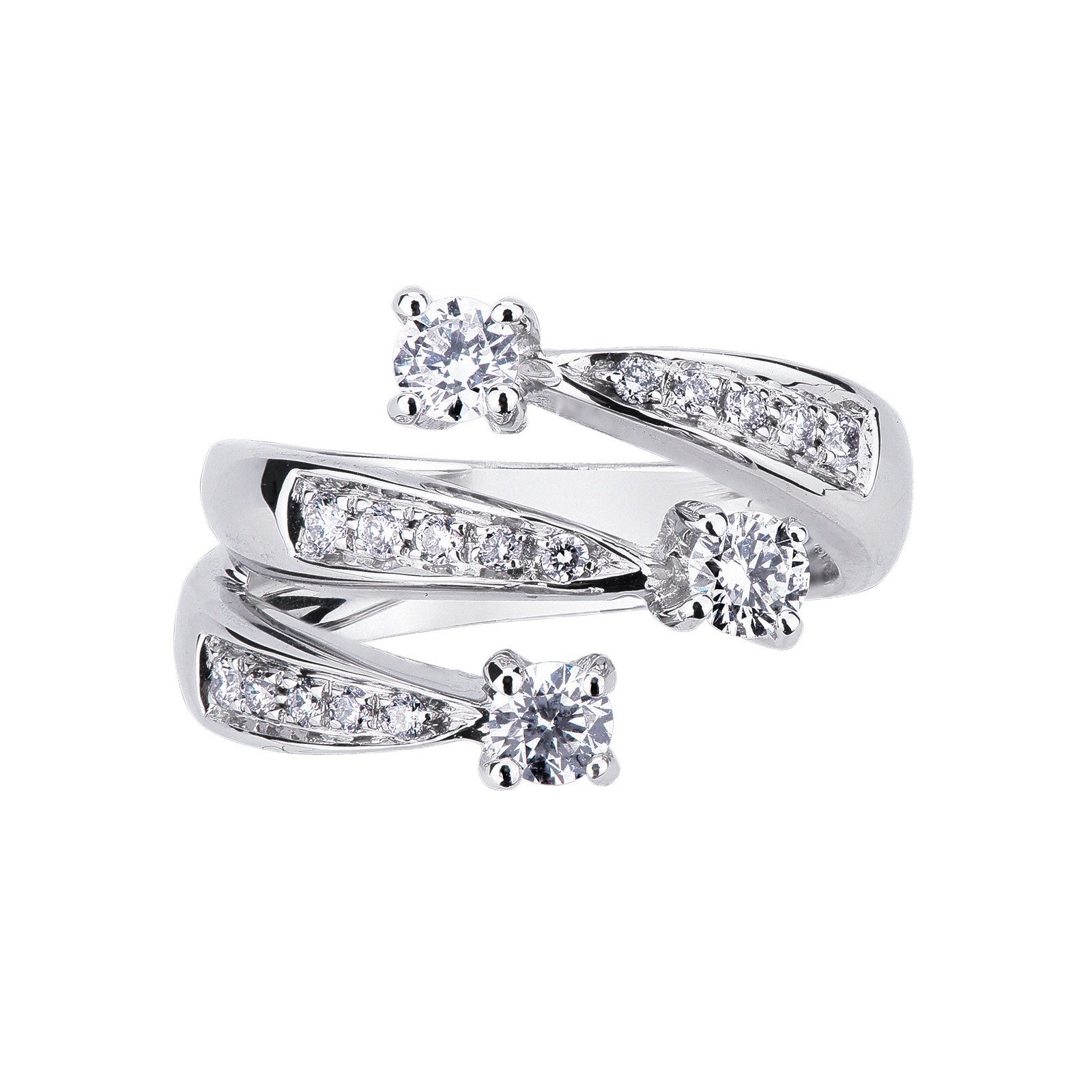 Three bands trilogy ring white gold 18k with diamonds
