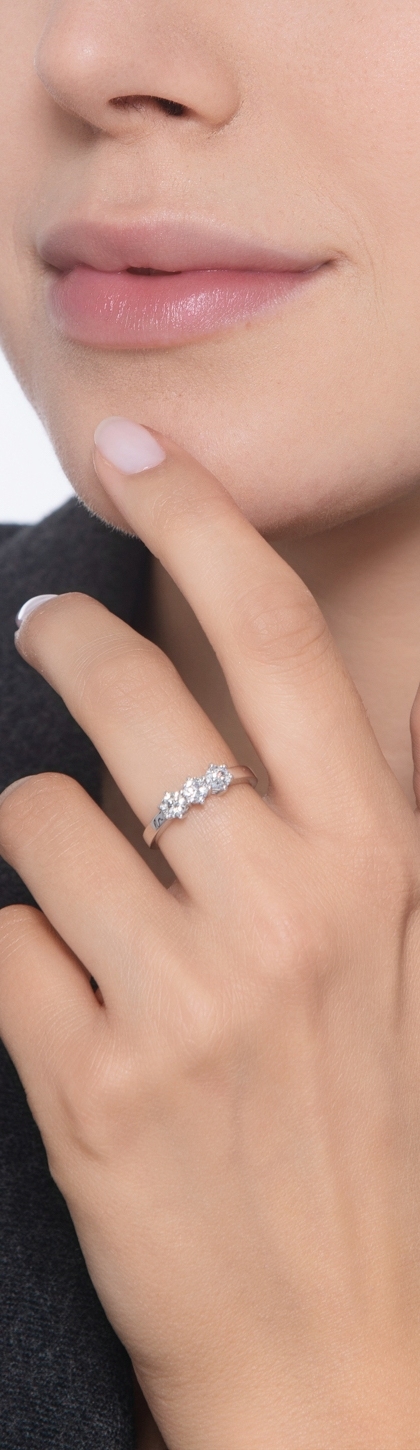 Trilogy Ring 18k White Gold with Diamonds, ct 0,60