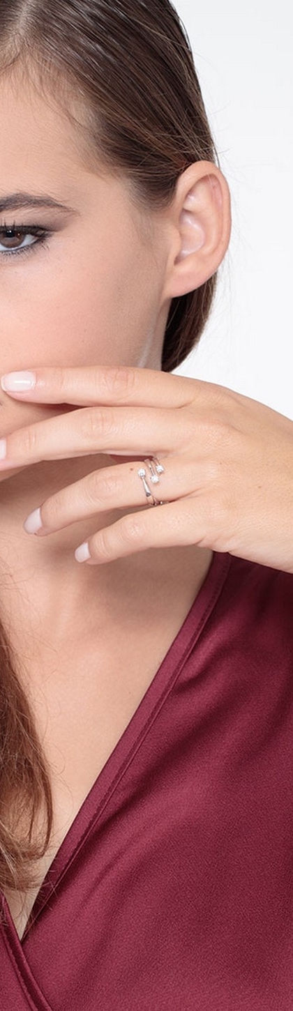 White gold 18k trilogy ring with diamond crossed bands