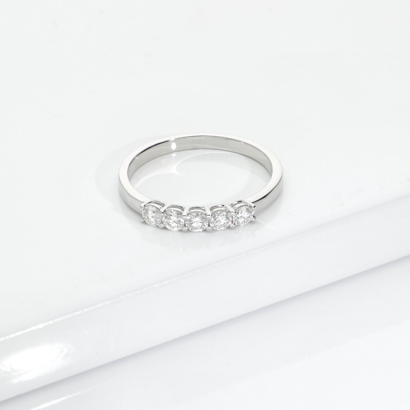 White gold 18k 5 stones diamond half eternity ring 1ct