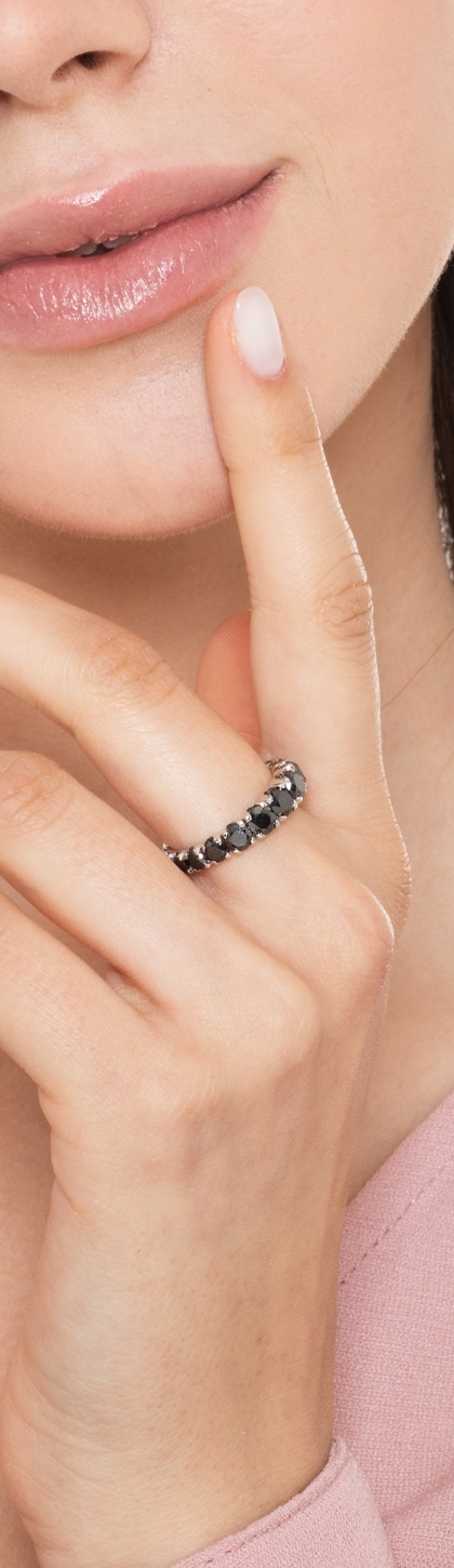 Black diamonds half eternity ring in white gold 750