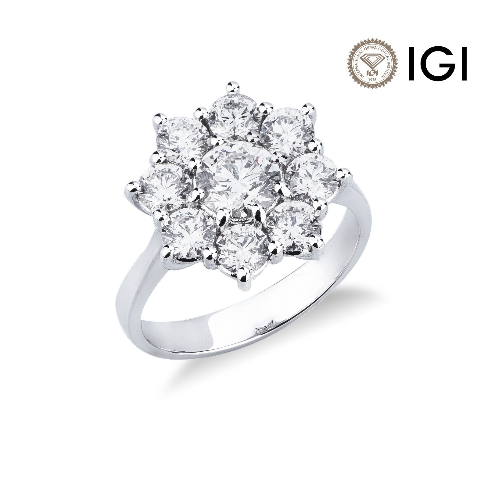 750 white gold diamond flower ring