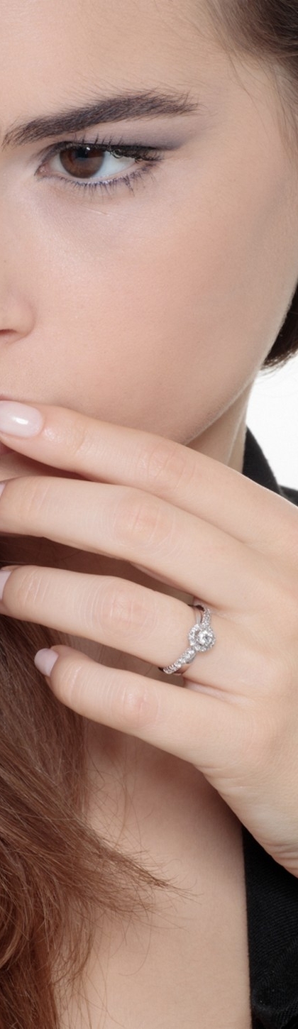 The diamonds are all brilliant-cut, have H colour and clarity VS: perfect balance between quality and brilliance for a truly romantic engagement ring.