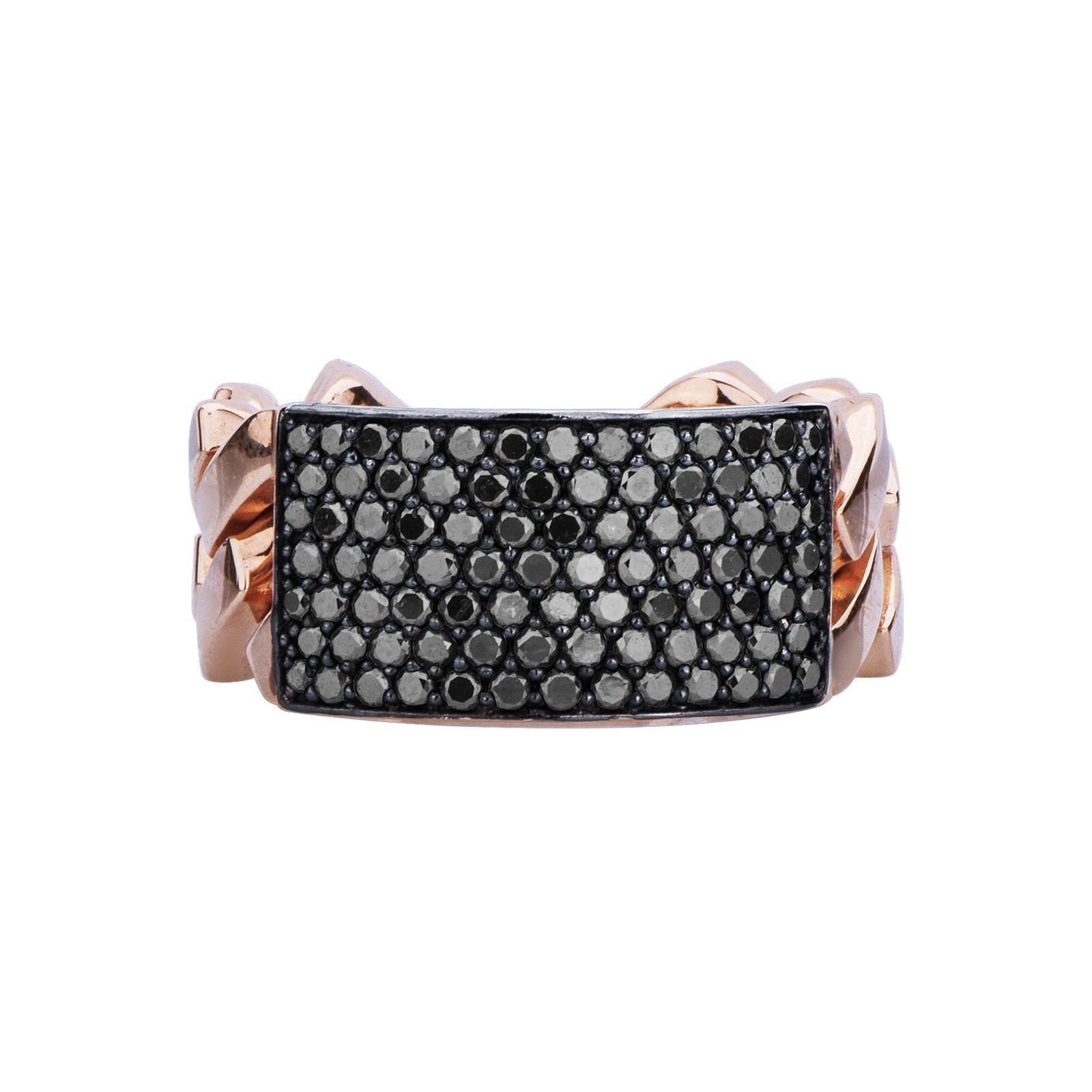 Rose gold 18k groumette ring with plate in black diamonds on burnished tips, brilliant cut
