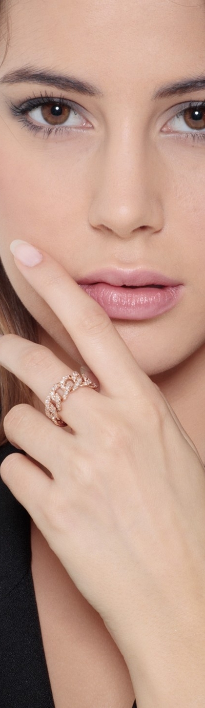 Rose gold 18k groumette ring with diamonds