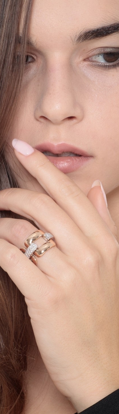 White and rose gold 18k soft link band ring with diamonds