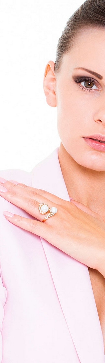 18k rosé gold ring with pearls and diamonds
