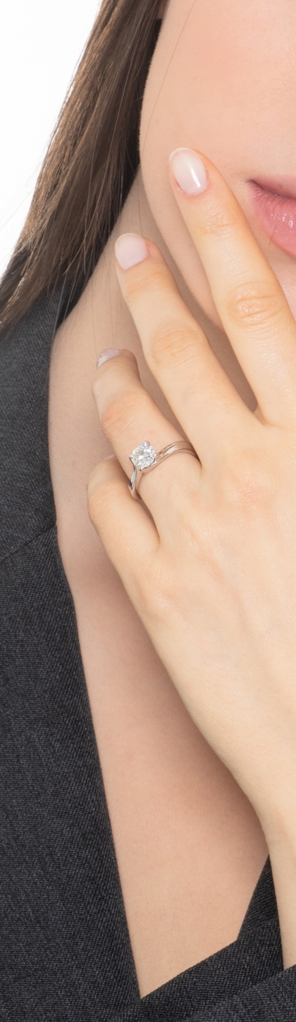 4 claw solitaire diamond ring 0,90 ct in white gold 18k