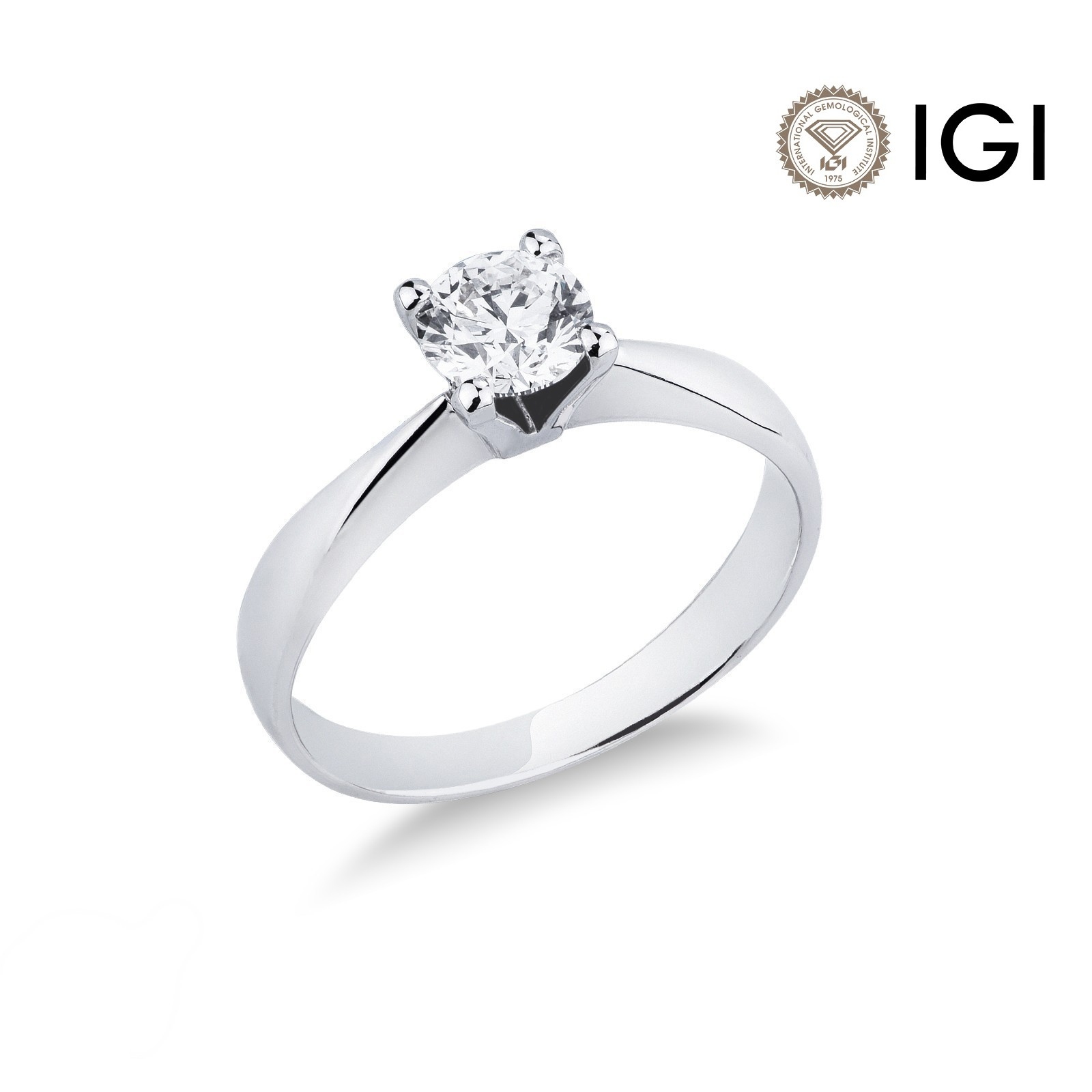 4 claw white gold 18k solitaire ring with a 0,90 ct diamond