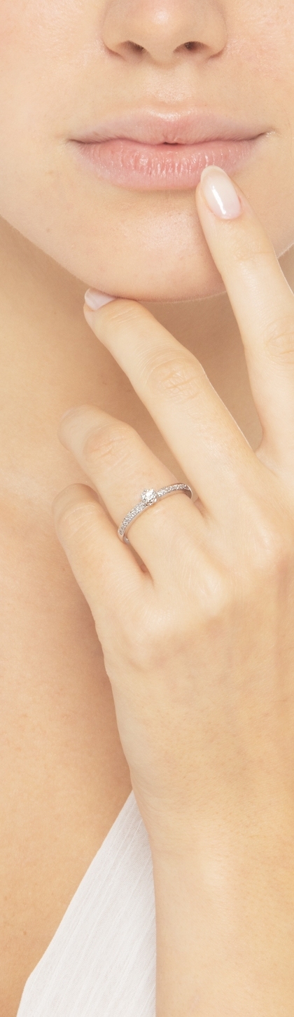 6 claw solitaire with diamond 0,15 ct and diamonds shoulder set