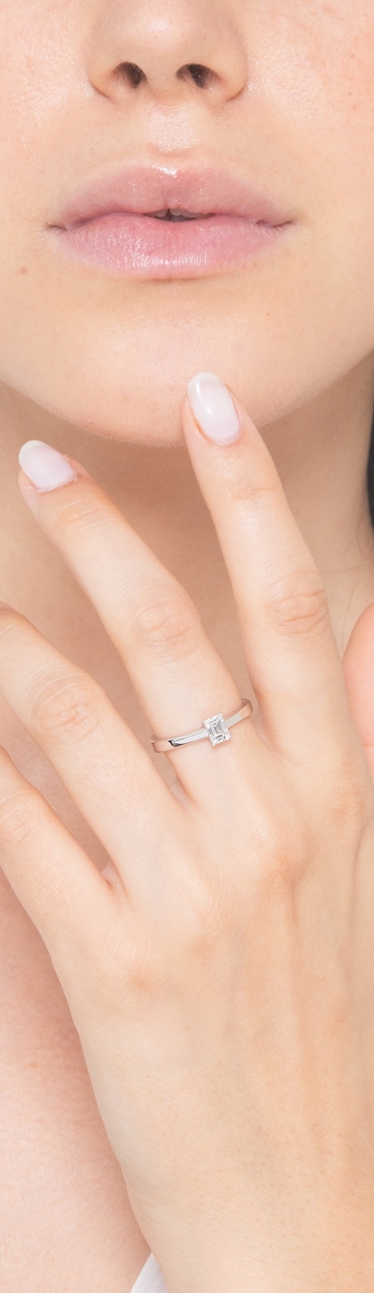 Engagement ring with a diamonds emerald cut 0.50 ct GIA in white gold 18k