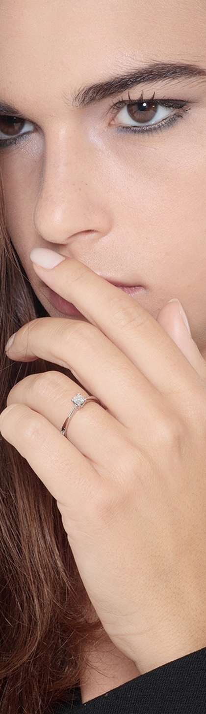 The ideal diamond ring for your proposal: elegant and classic this solitaire ring is crafted in 18kt white gold. It features a central 0,30ct diamond with H colour and VS clarity.