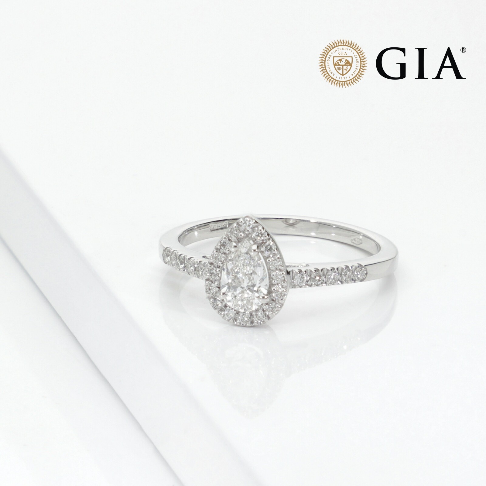 Ring with a diamond pear cut 0.40 ct GIA in 18k white gold